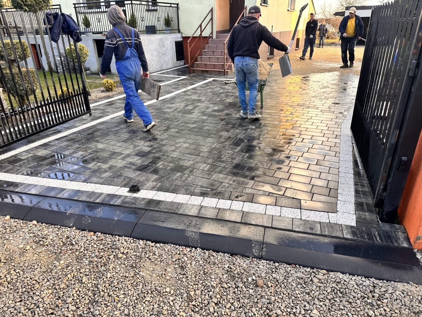 Zatrudnienie profesjonalnej firmy do układania kostki brukowej, co pomogło zminimalizować problemy związane z ograniczoną przestrzenią.